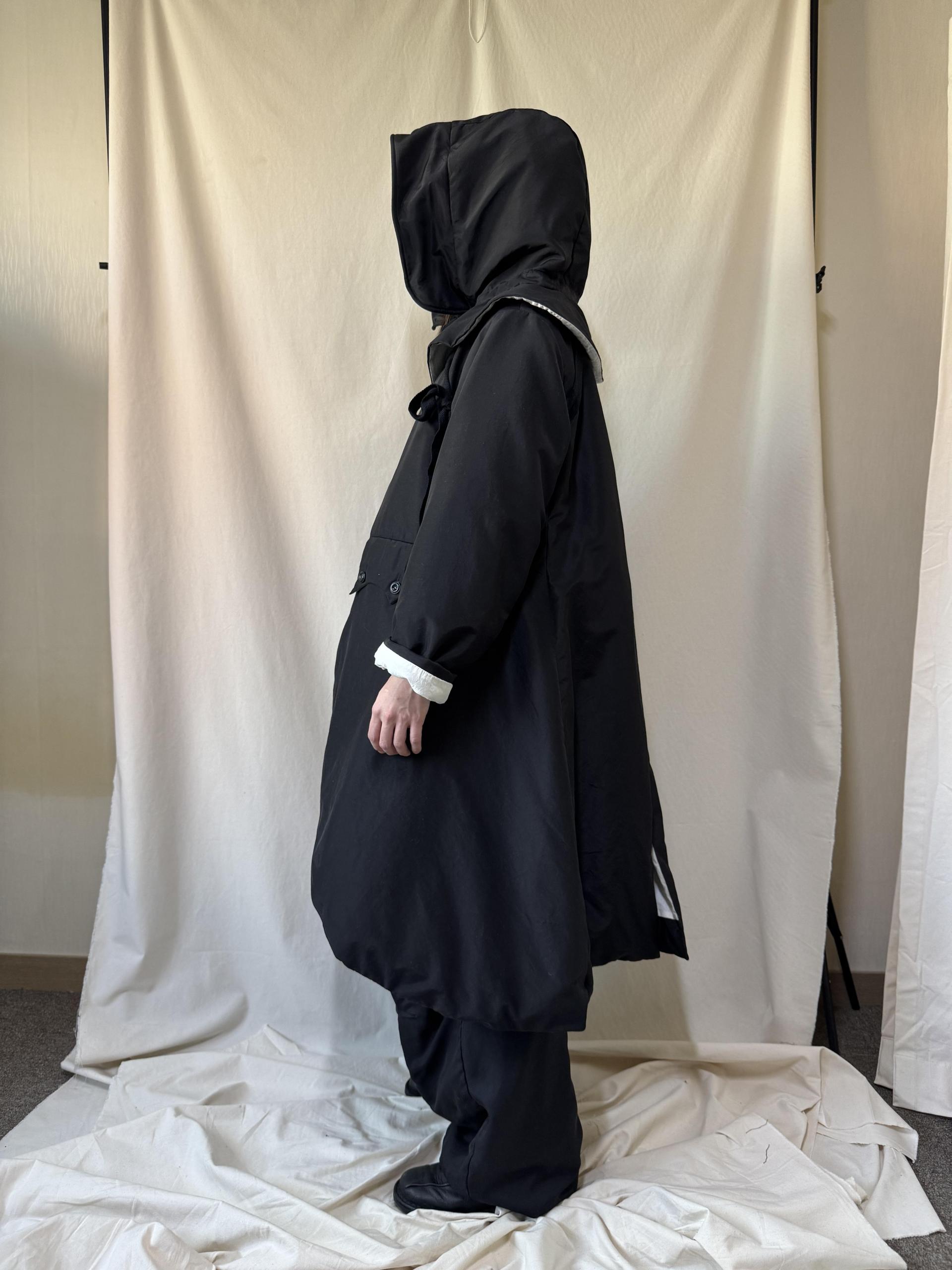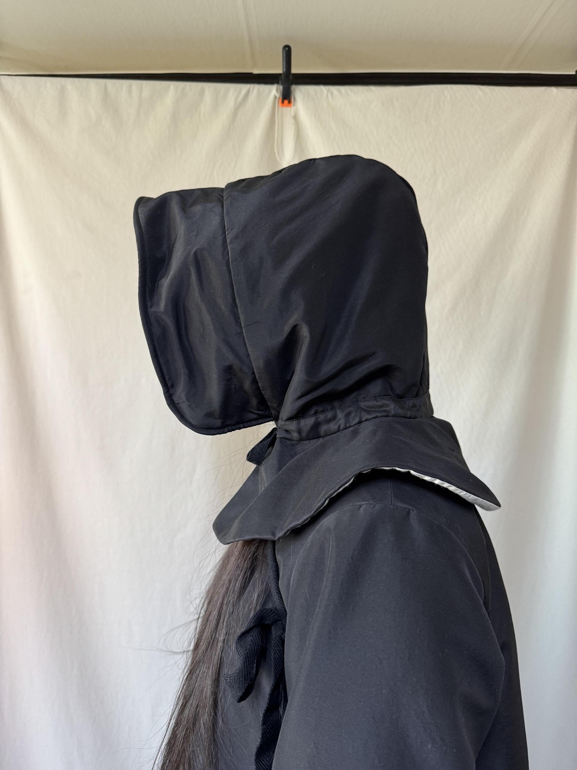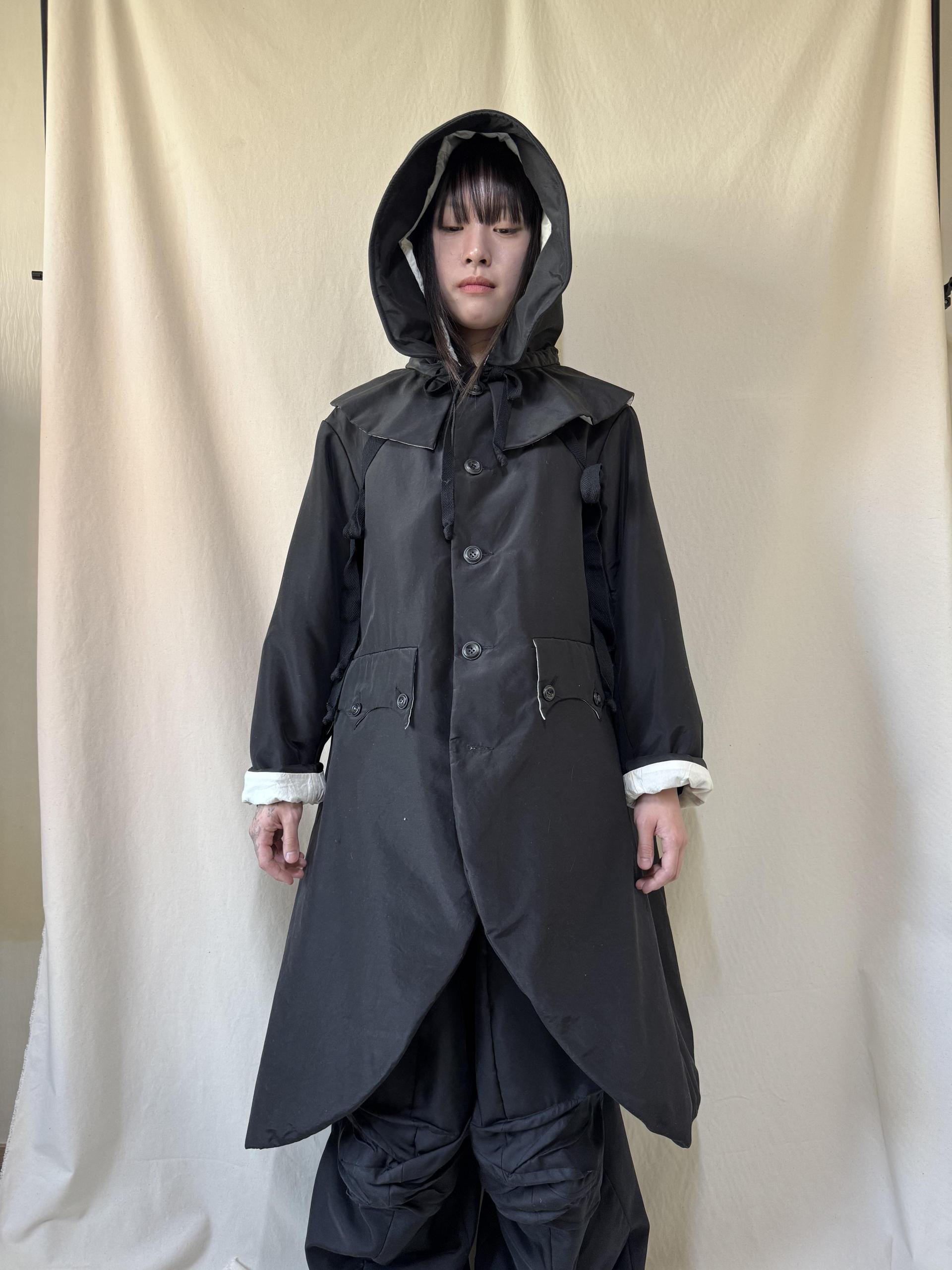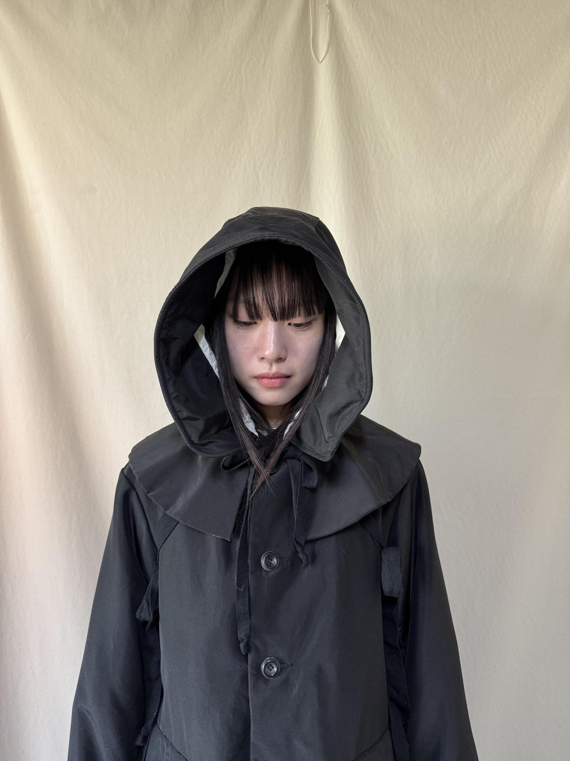 bonnet hooded silk coat