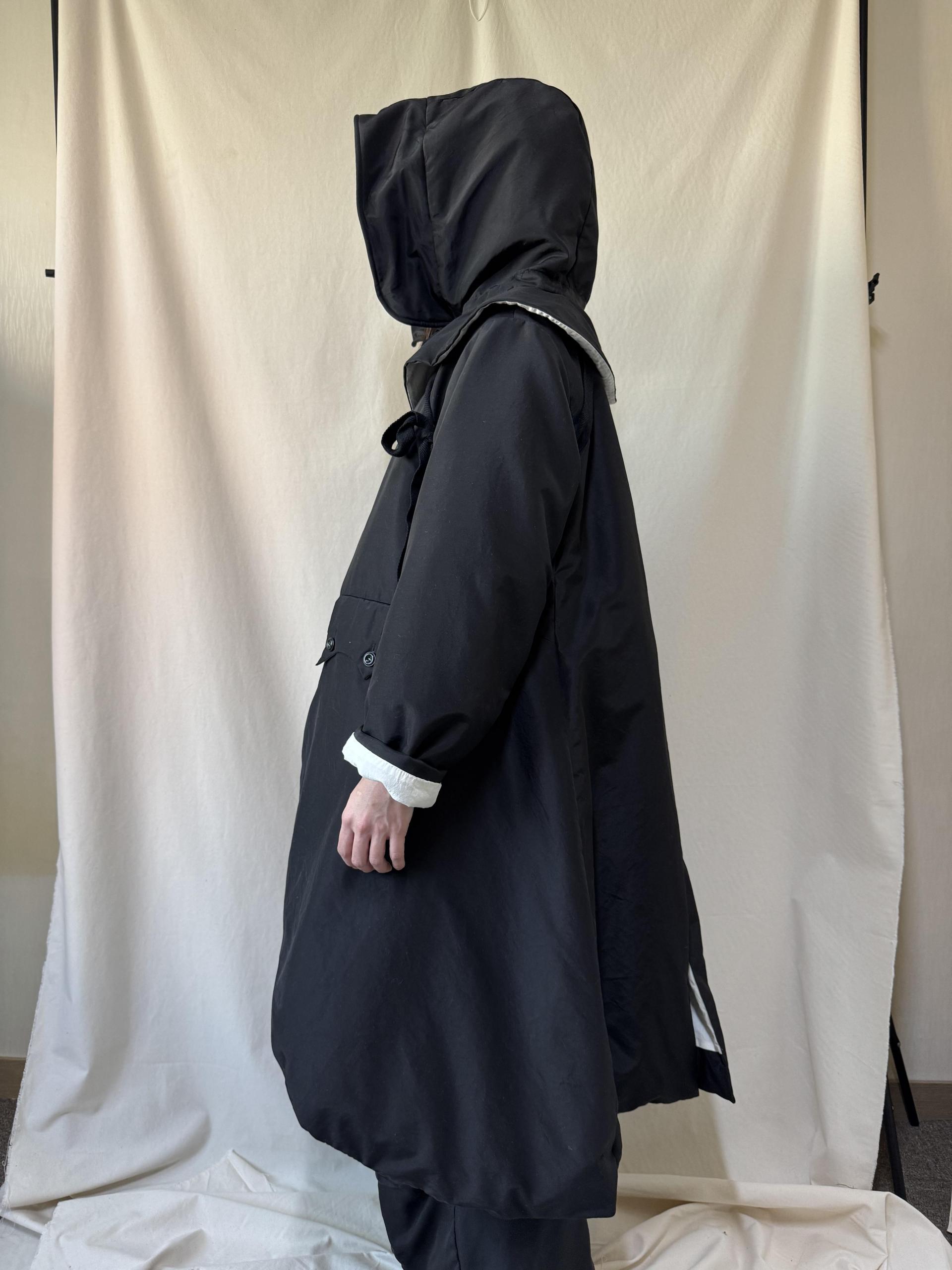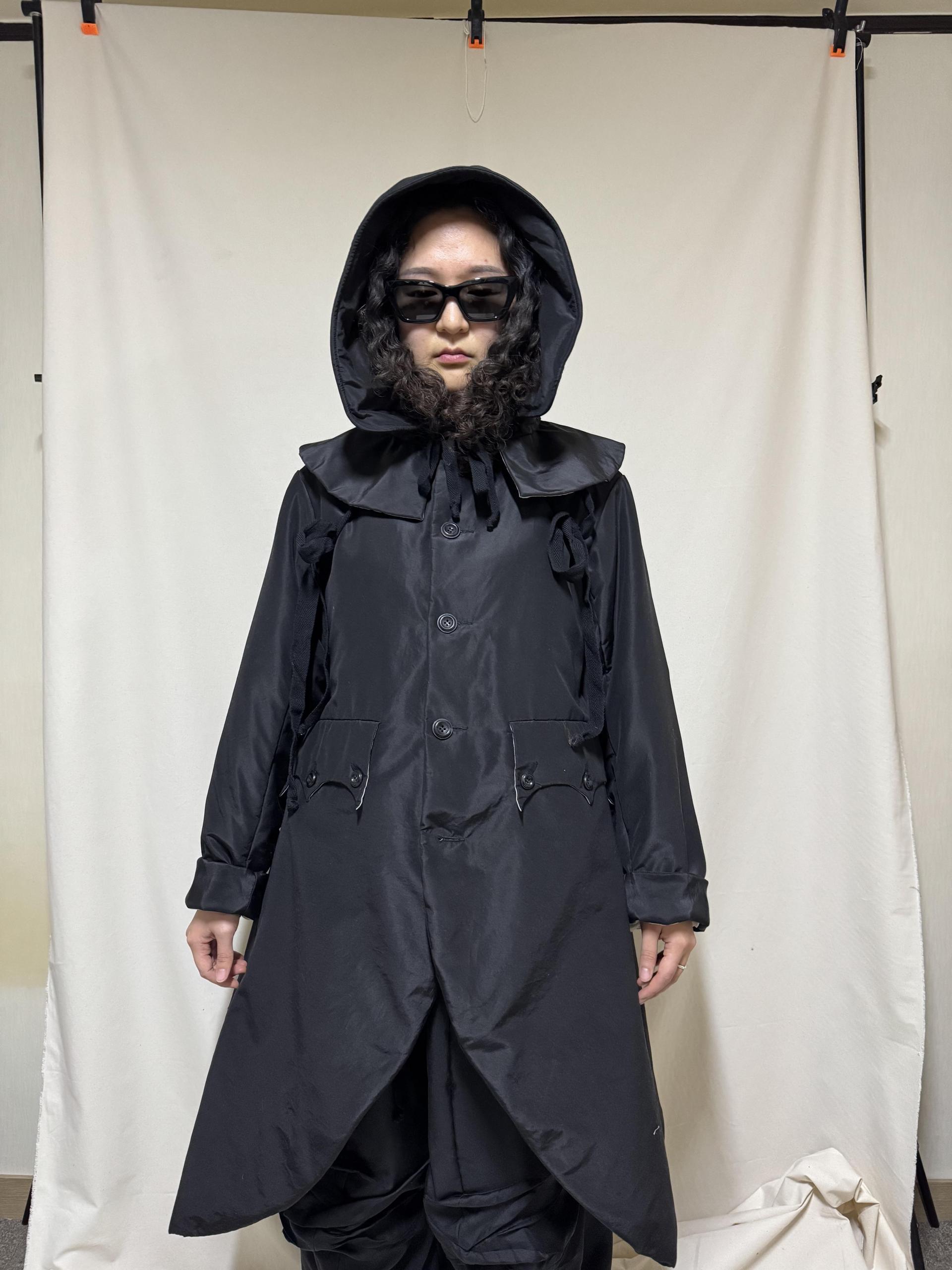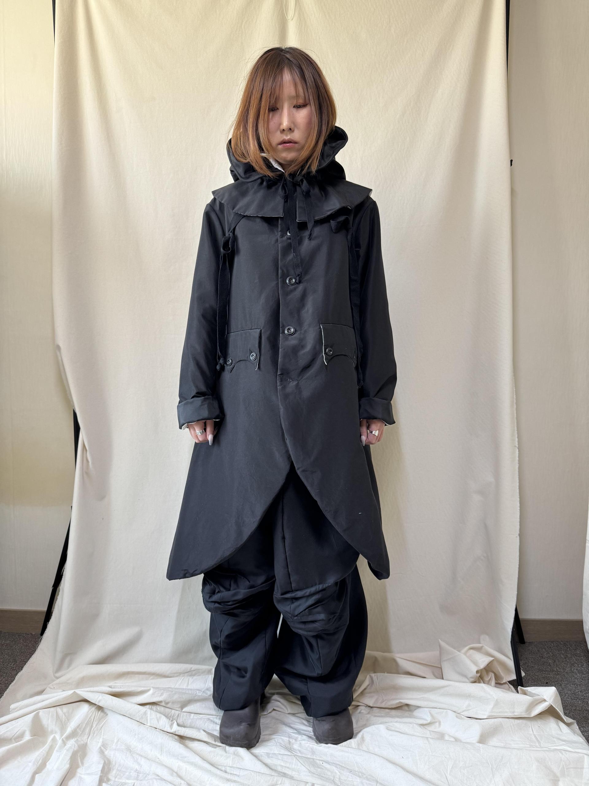 bonnet hooded silk coat