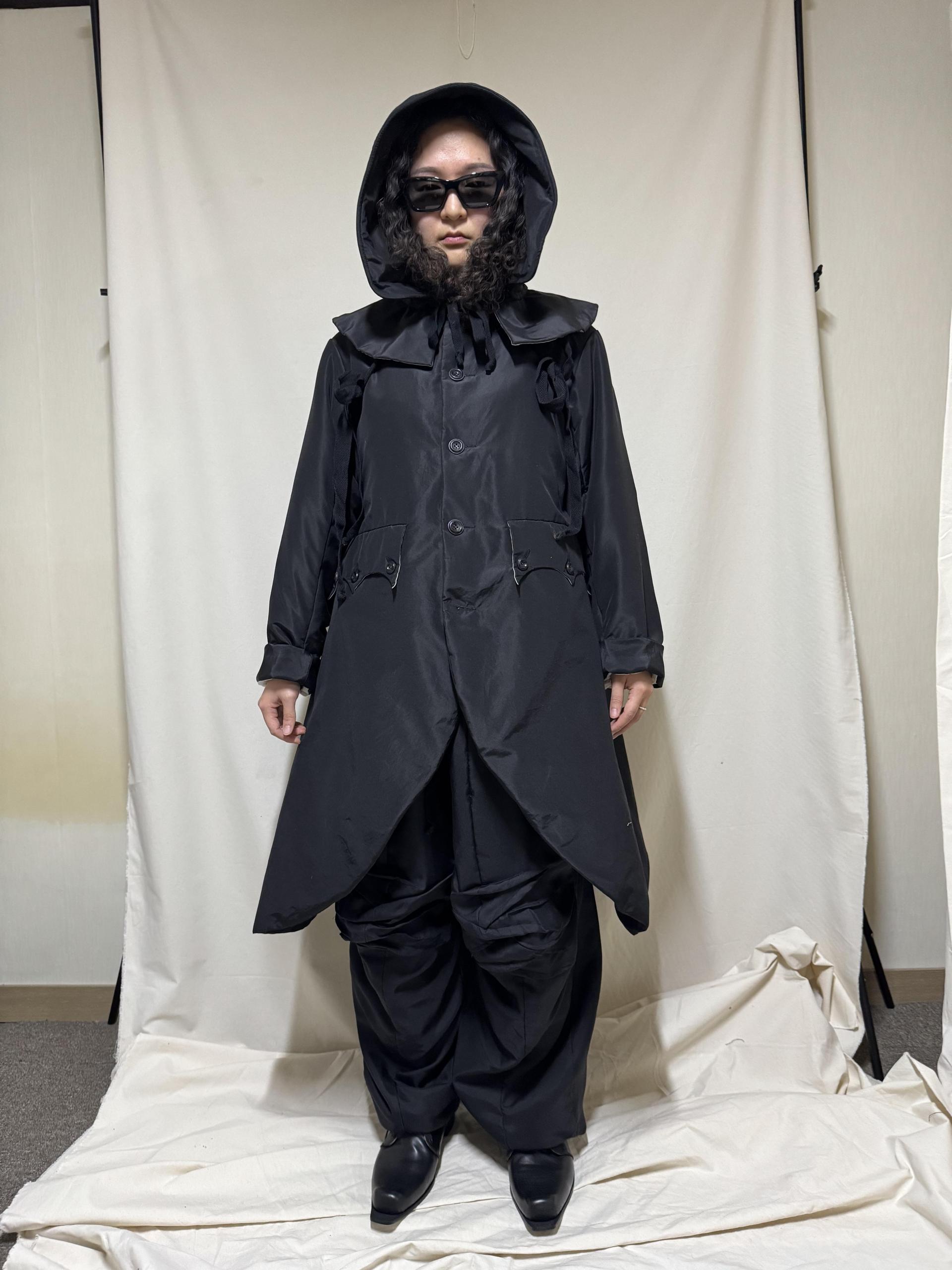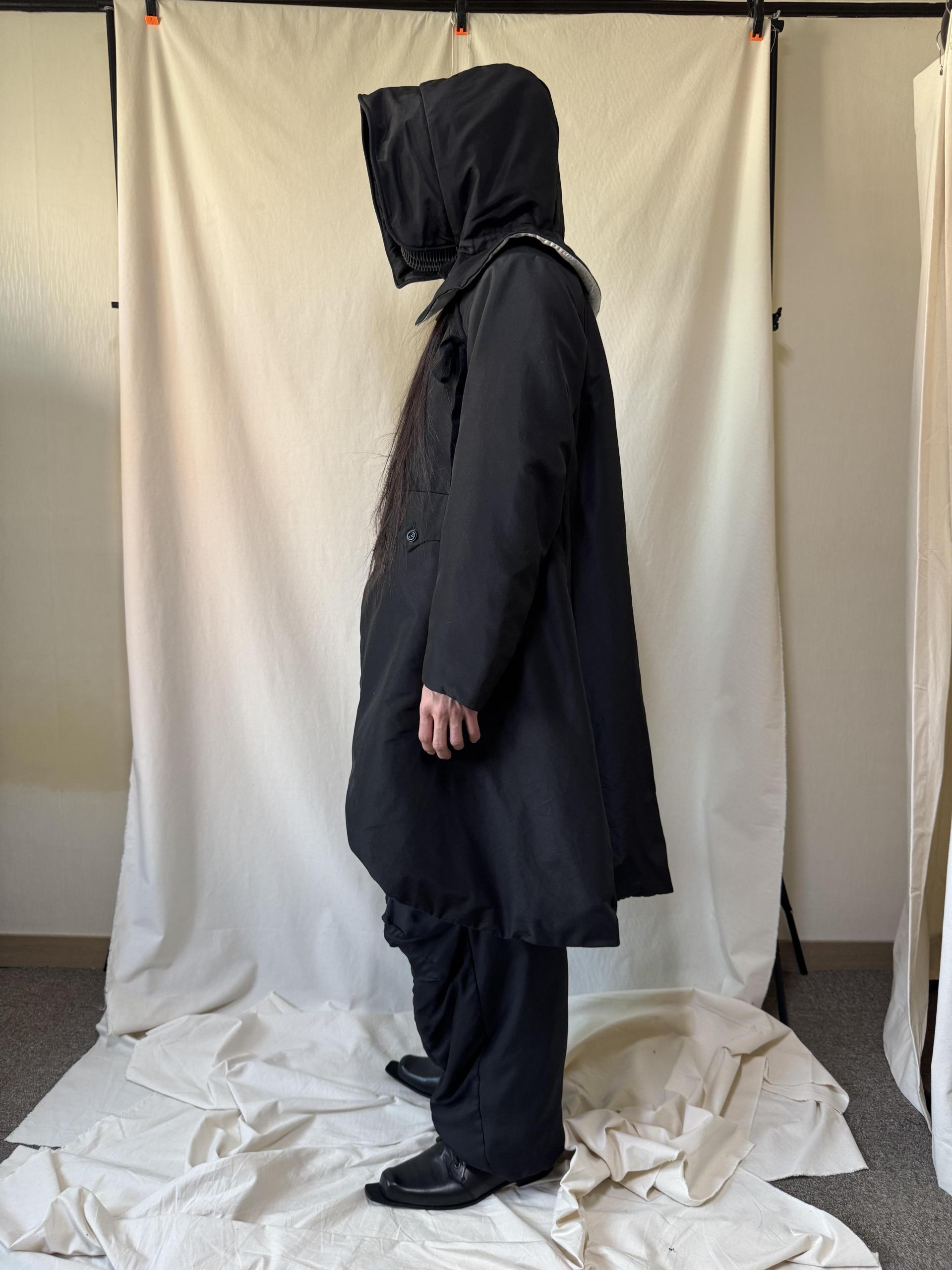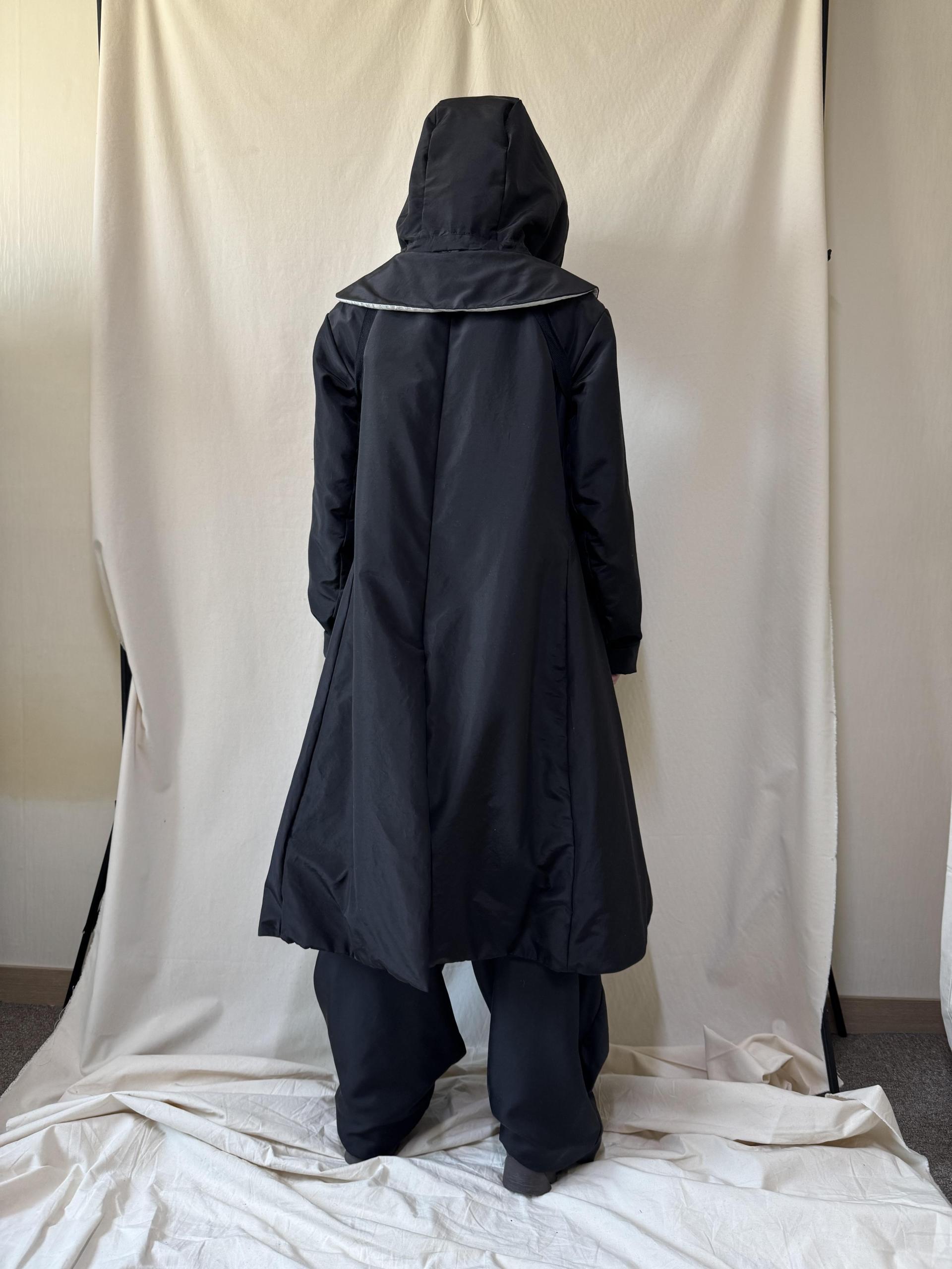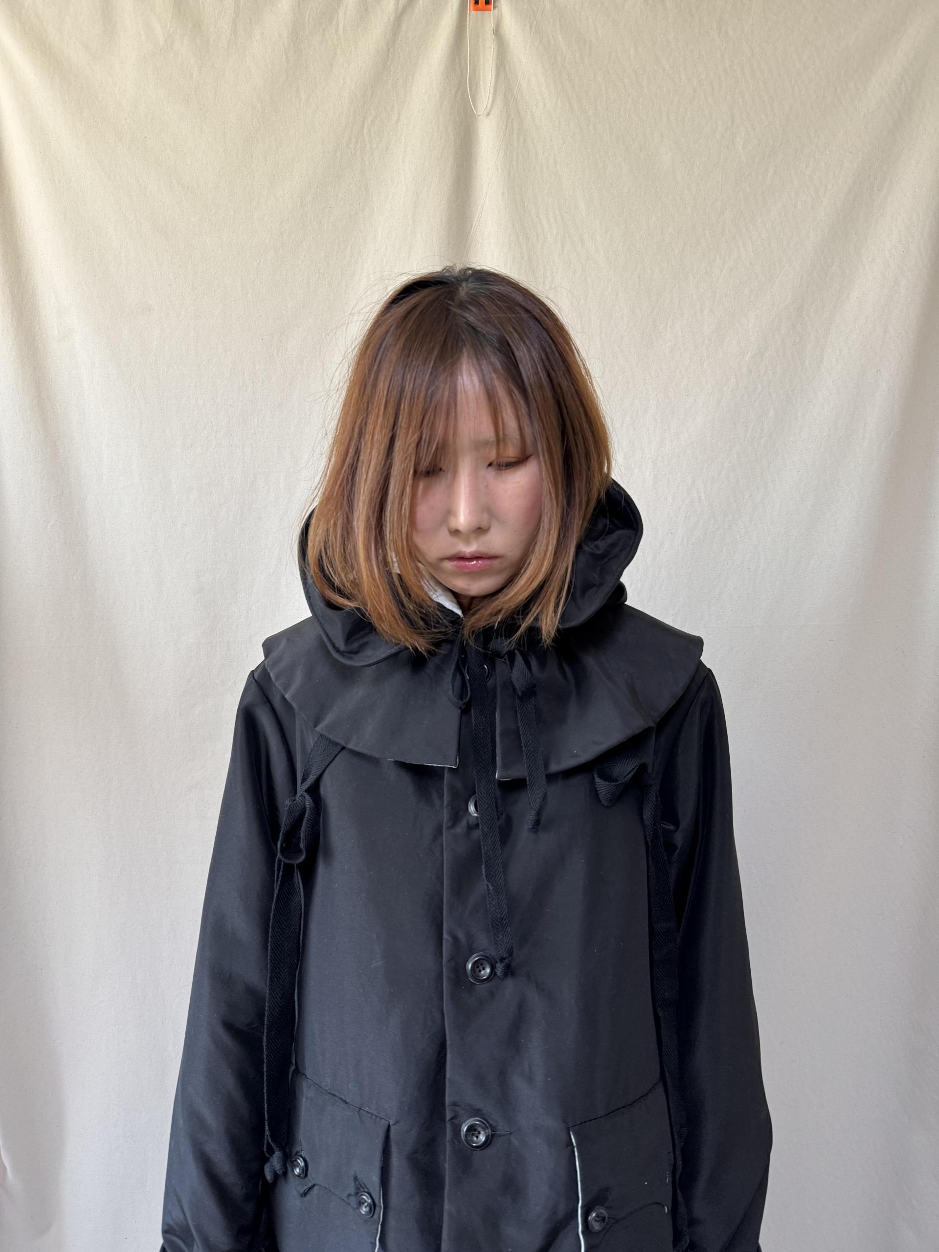 bonnet hooded silk coat